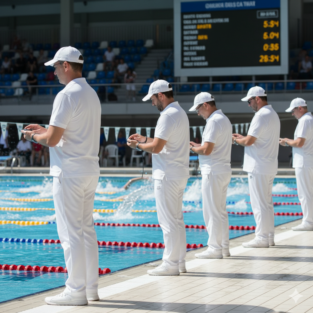 En plus des rôles attribués aux chronométreurs, les juges sont qualifiés pour assurer les fonctions de juges de virages, juge de virages en chef, et juge de nage.